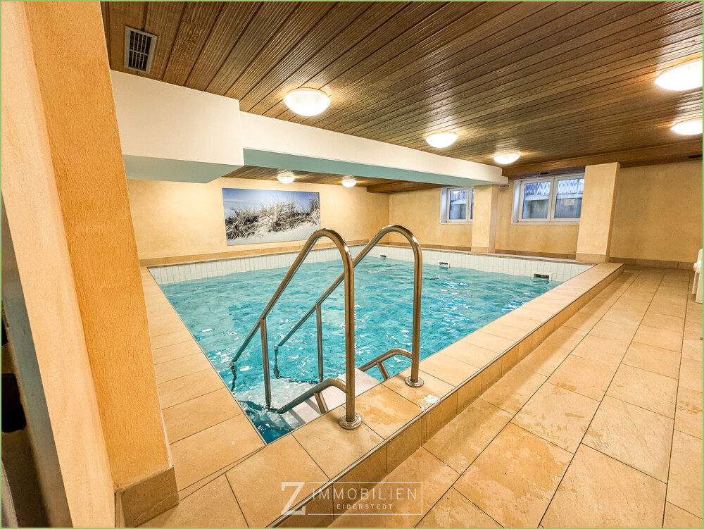 Ein besonderes Highlight des Hauses ist der großzügige Wellnessbereich mit Schwimmbad, Sauna und Ruhezone. Ein geschätzter Mehrwert für Urlaubsgäste zu jeder Jahreszeit. Ein Fahrstuhl verbindet die Tiefgarage bequem mit allen Etagen des Hauses.