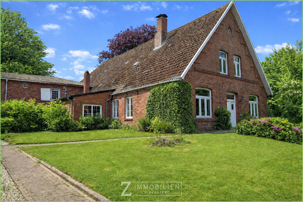 Mitten im Herzen Eiderstedts, eingebettet in ein denkmalgeschütztes Ensemble neben der imposanten St.-Pankratius-Kirche, liegt dieses ehemalige Diakonat von 1831.